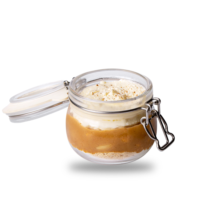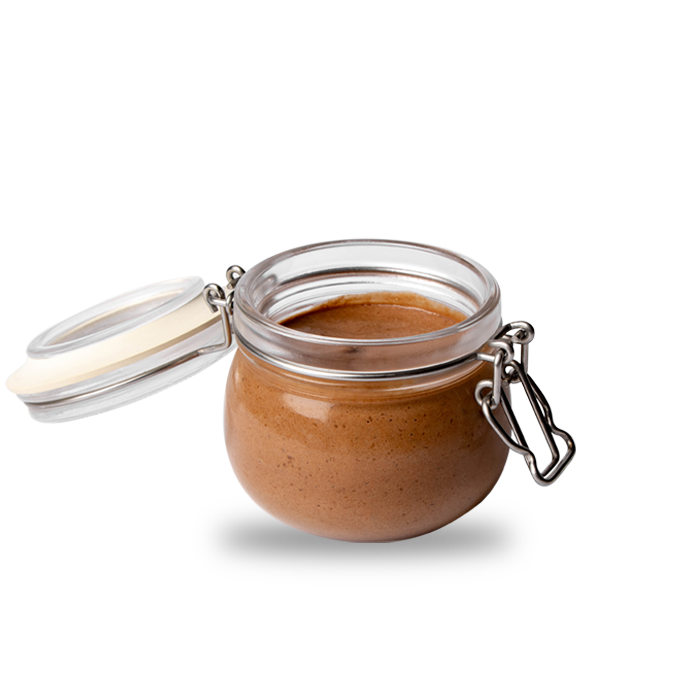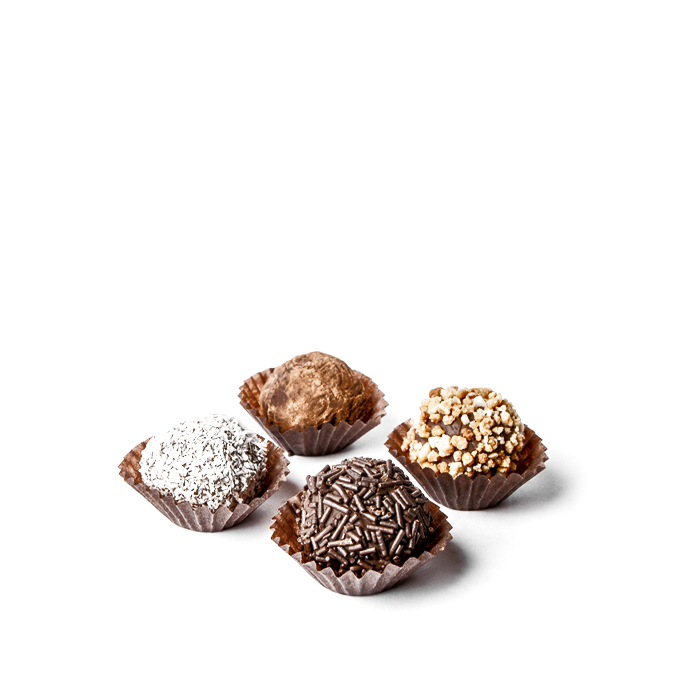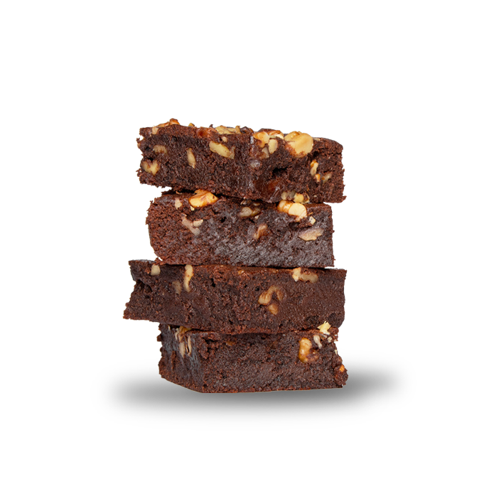 Fatia de bolo brownie com creme de avelã. Extra: Bola de gelado